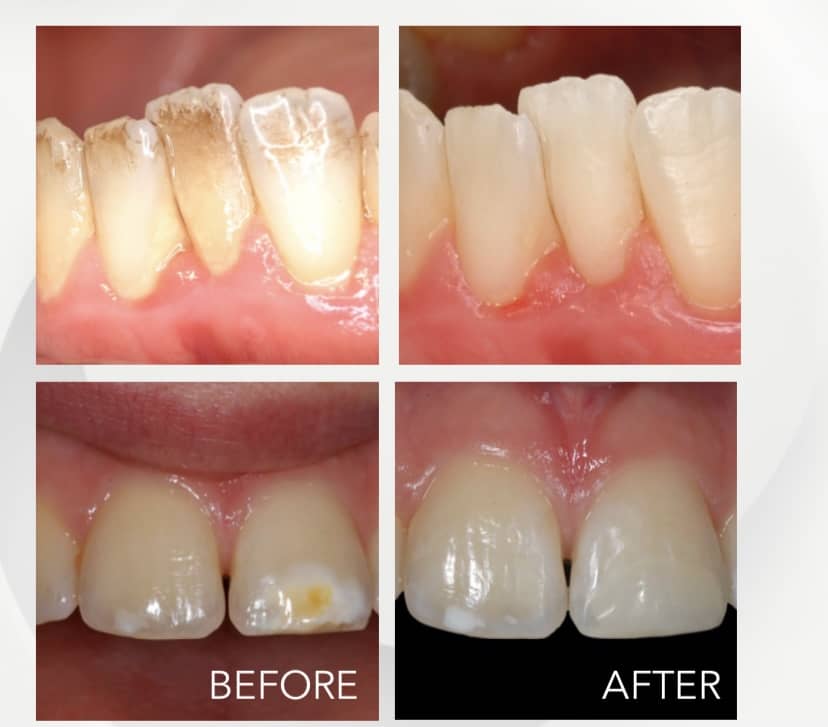 It uses a gentle mix of water, air pressure and sodium bicarbonate powder to give immediate results with no risk of damage to your teeth.